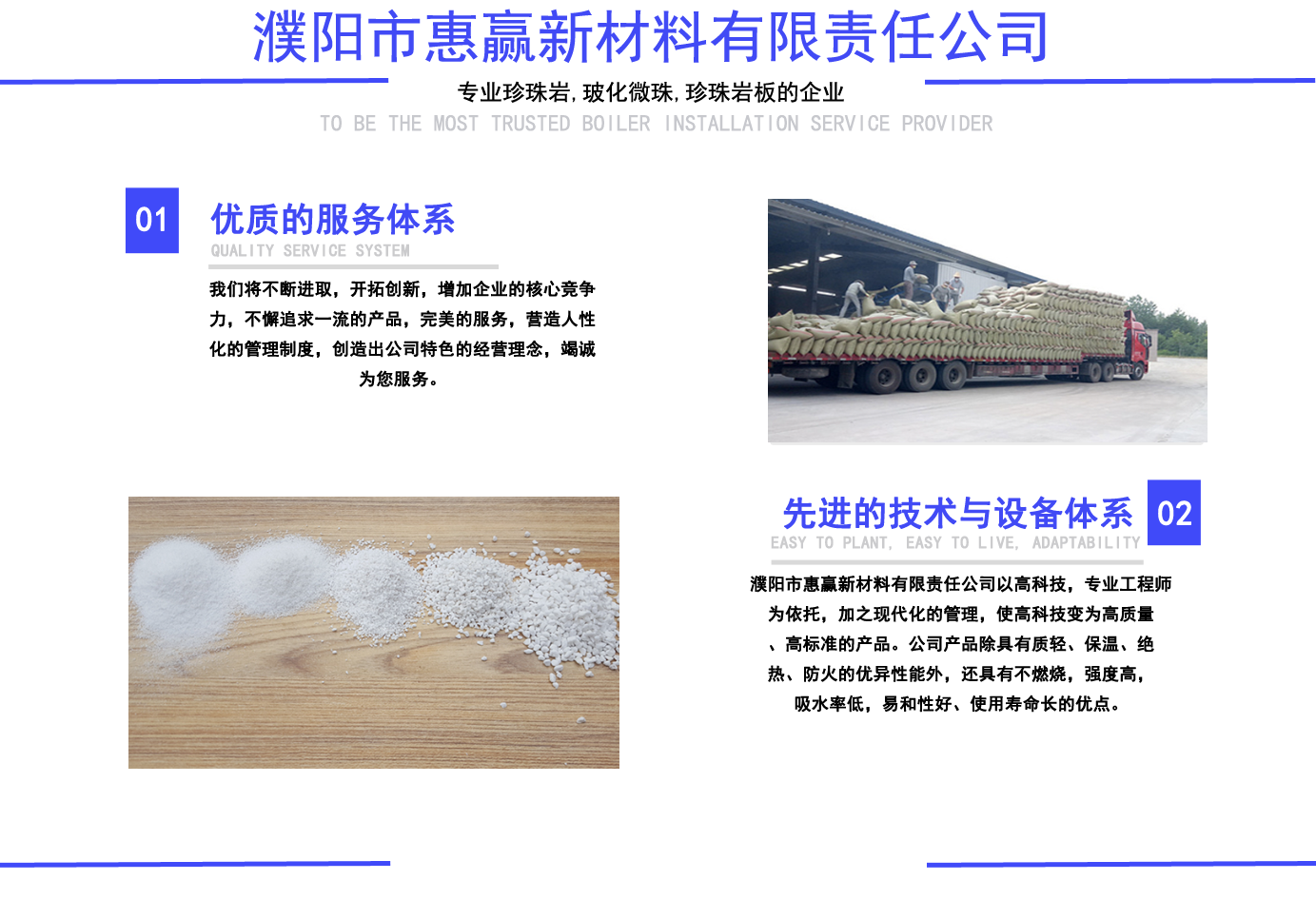 珍珠巖,玻化微珠,玻化微珠保溫砂漿, 珍珠巖板,憎水珍珠巖,憎水型珍珠巖, 憎水型膨脹珍珠巖, 膨脹珍珠巖,珠光砂-濮陽市惠贏新材料有限責(zé)任公司 公司簡介/ ABOUT